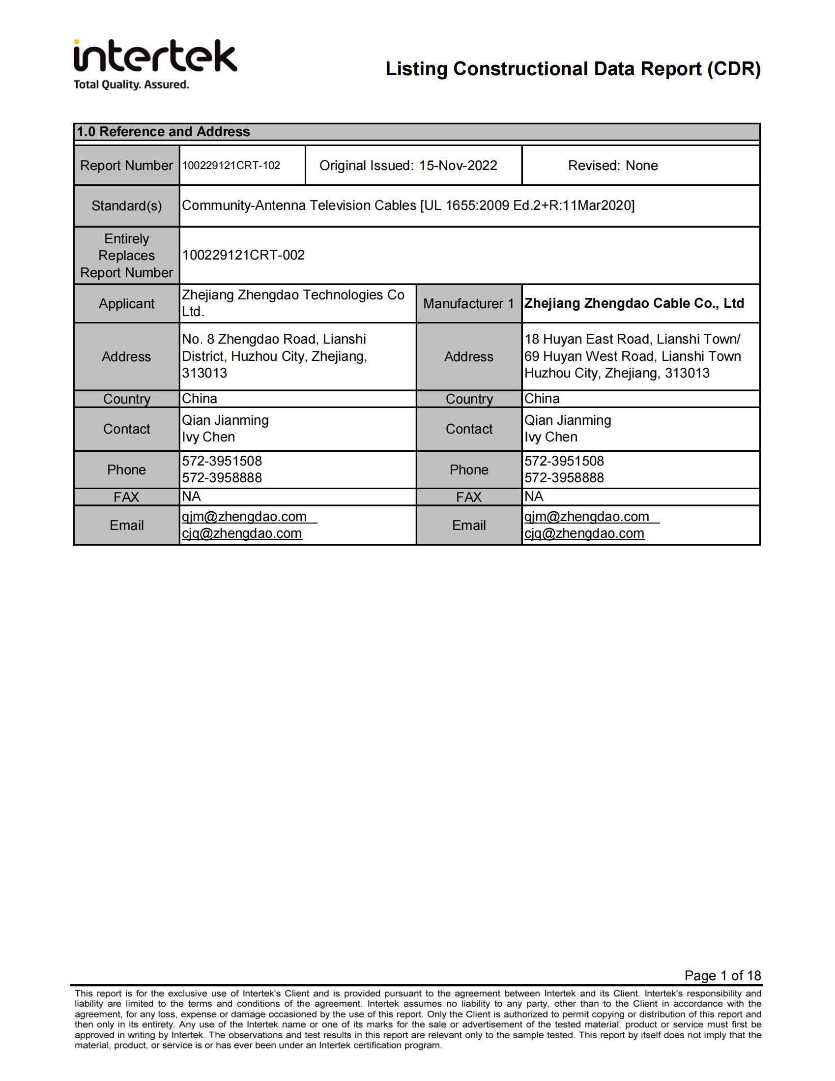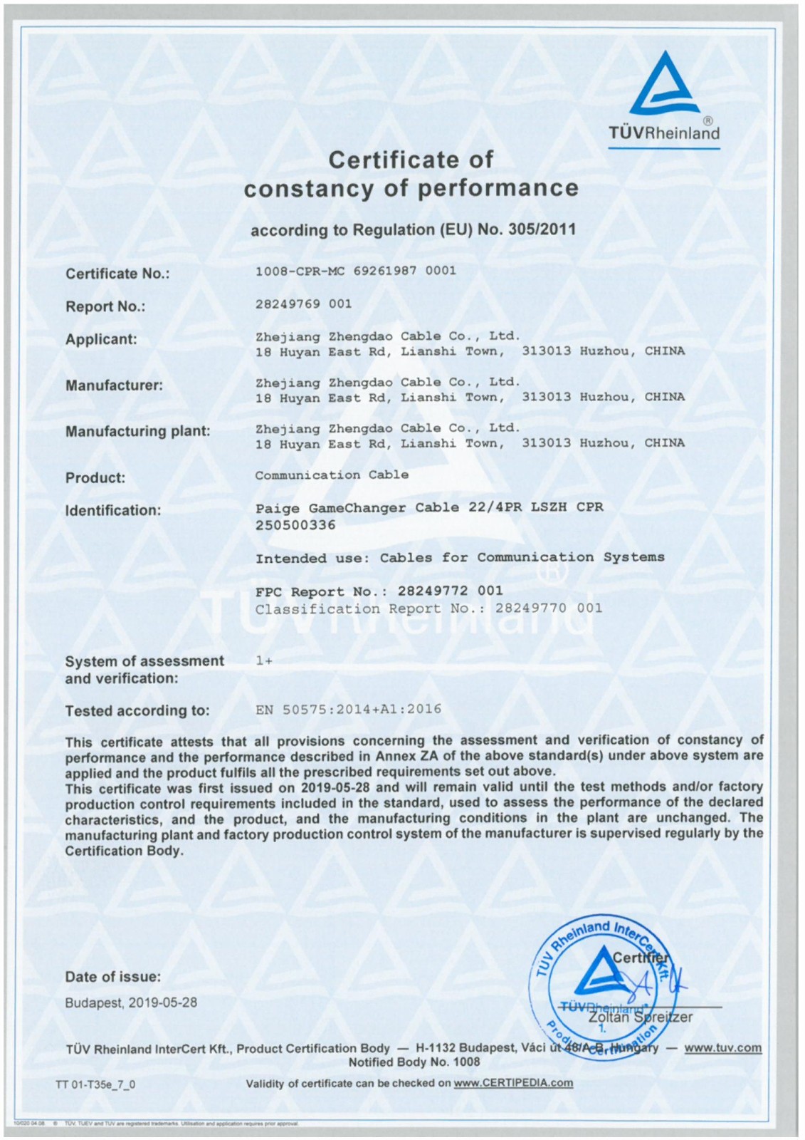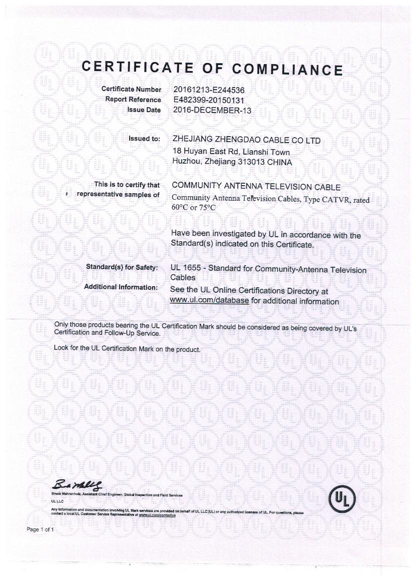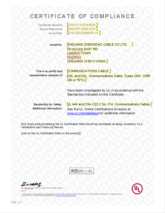 数字通信电缆 ETL 证书-CMR、CM、CMX、CMG