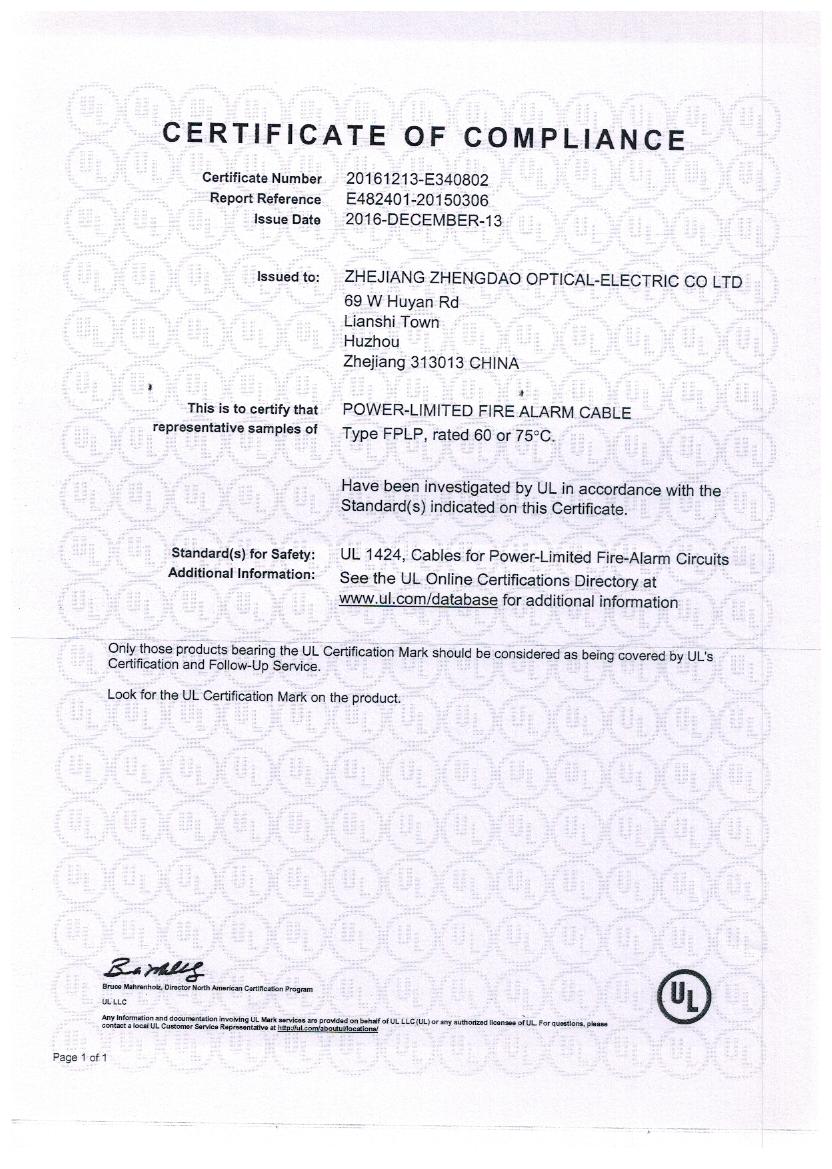Cables For Power-Limited Fire-Alarm Circuits ETL-FPLR、FPL
